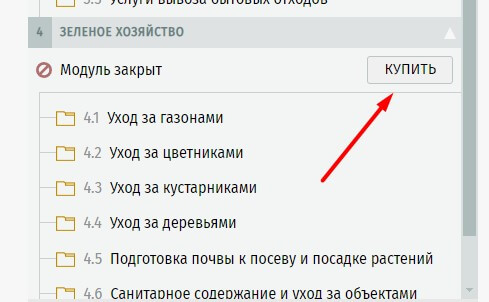 Для выписки счета нажмите кнопку [ КУПИТЬ ] под названием модуля в перечне работ МКД-расчет.